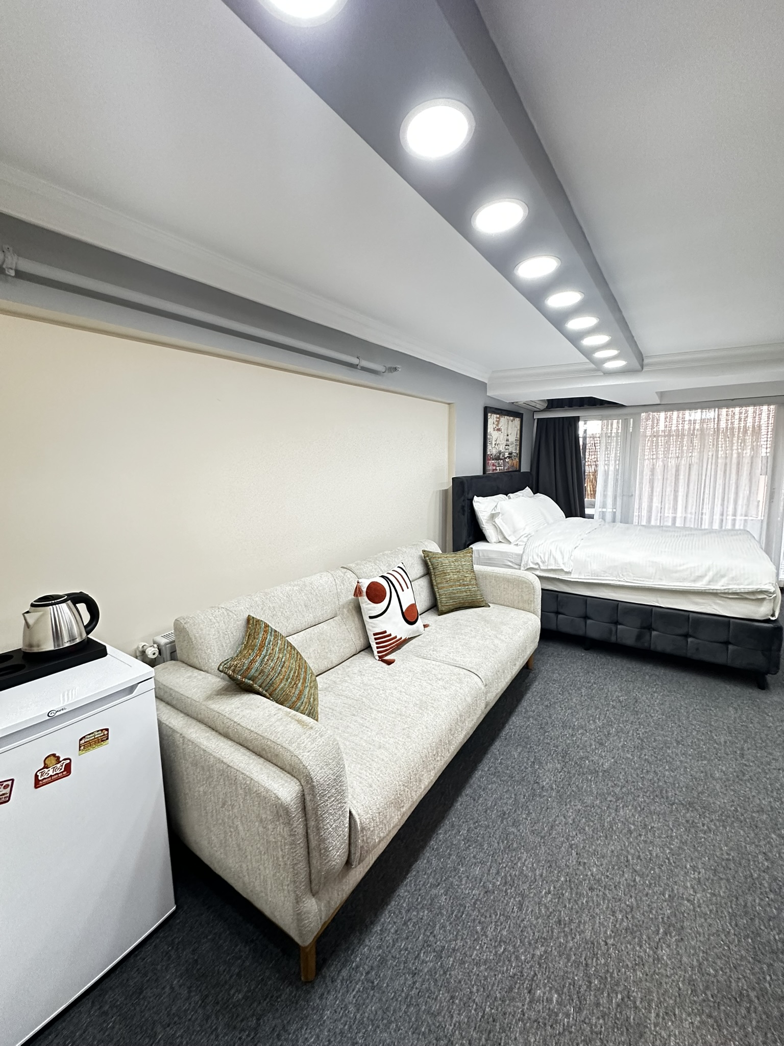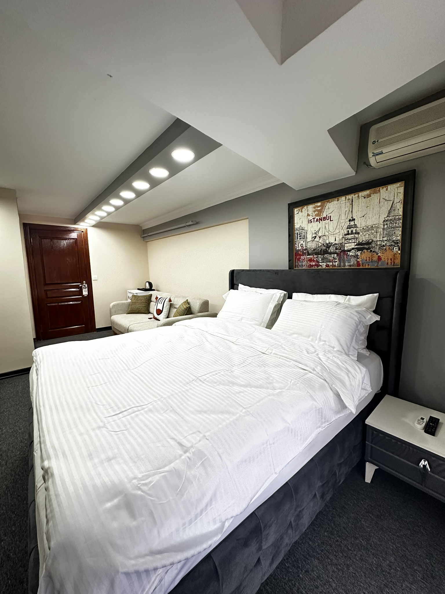 Şehirde geçireceğiniz zamanı daha rahat ve bağımsız kılmak için tasarlanan Mutfaklı Double Oda 5, konforlu çift kişilik yatağıyla huzurlu bir uyku imkânı sunar. Odanın içerisinde yer alan tam donanımlı mutfak, misafirlere kendi yemeklerini hazırlama özgürlüğü tanırken modern dekorasyonu ile ferah bir ortam yaratır. Ayrıca yüksek hızlı internet, klima, televizyon ve çalışma alanı gibi detaylar hem iş seyahatleri hem de tatil amaçlı konaklamalarda misafirlerin tüm ihtiyaçlarını karşılar. Uzun süreli veya kısa süreli konaklamalarda ev sıcaklığını yaşatan Mutfaklı Double Oda 5, İstanbul’un merkezinde rahat ve keyifli bir deneyim sunar.